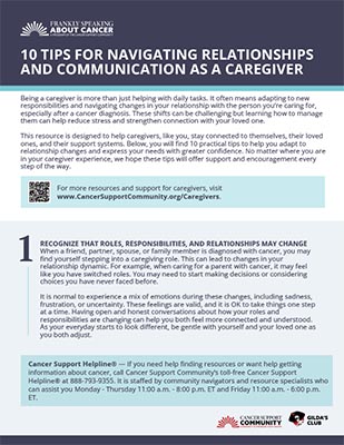 Frankly Speaking About Cancer® is the Cancer Support Community’s landmark cancer education series that provides trusted information on a variety of topics important to people affected by cancer.